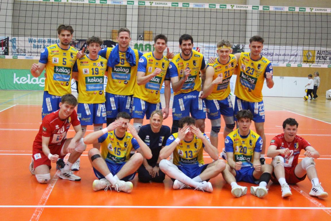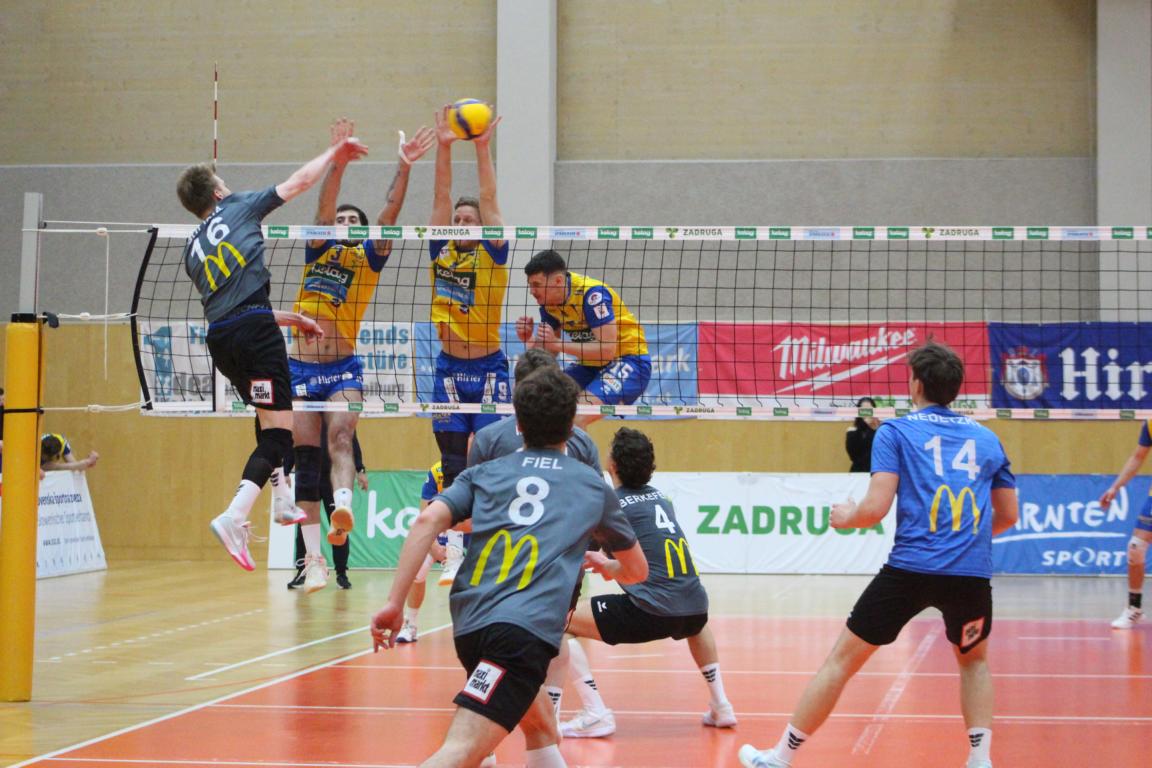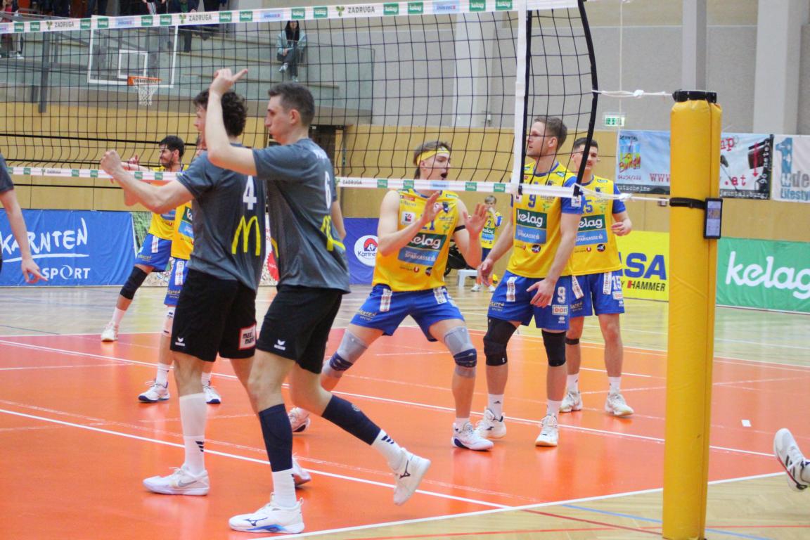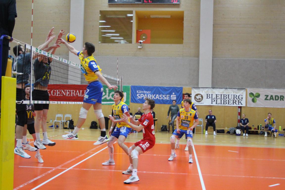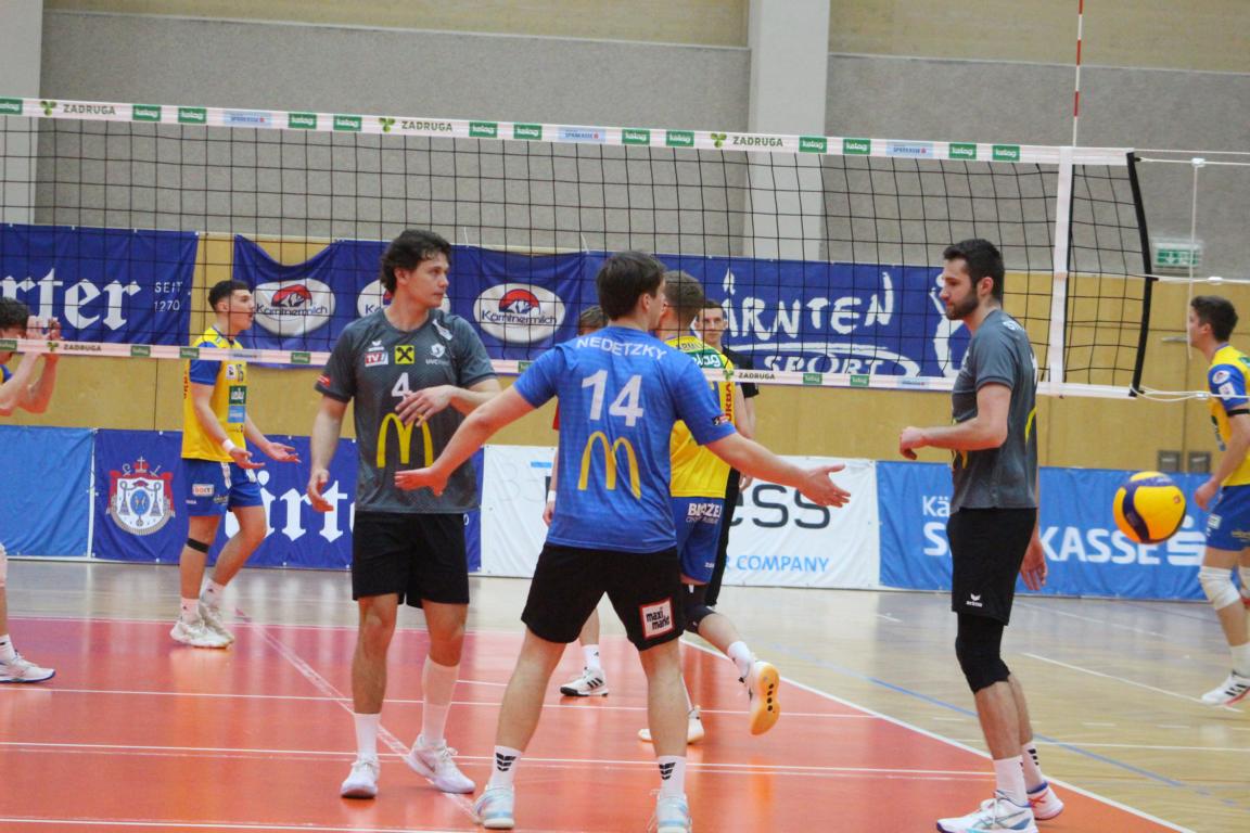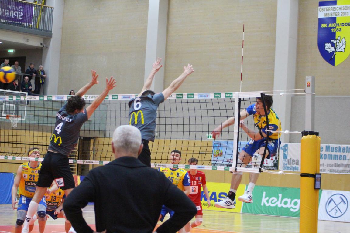 Erfolgreicher Auftakt für SK Zadruga Aich/Dob in der Halbfinalserie der AVL Men: Die Kärntner behielten am Sonntag vor heimischem Publikum mit 3:1 (22:25, 25:21, 25:19, 25:12) gegen UVC McDonalds Ried/Innkreis die Oberhand und gingen in der Best-of-5-Serie mit 1:0 in Führung.