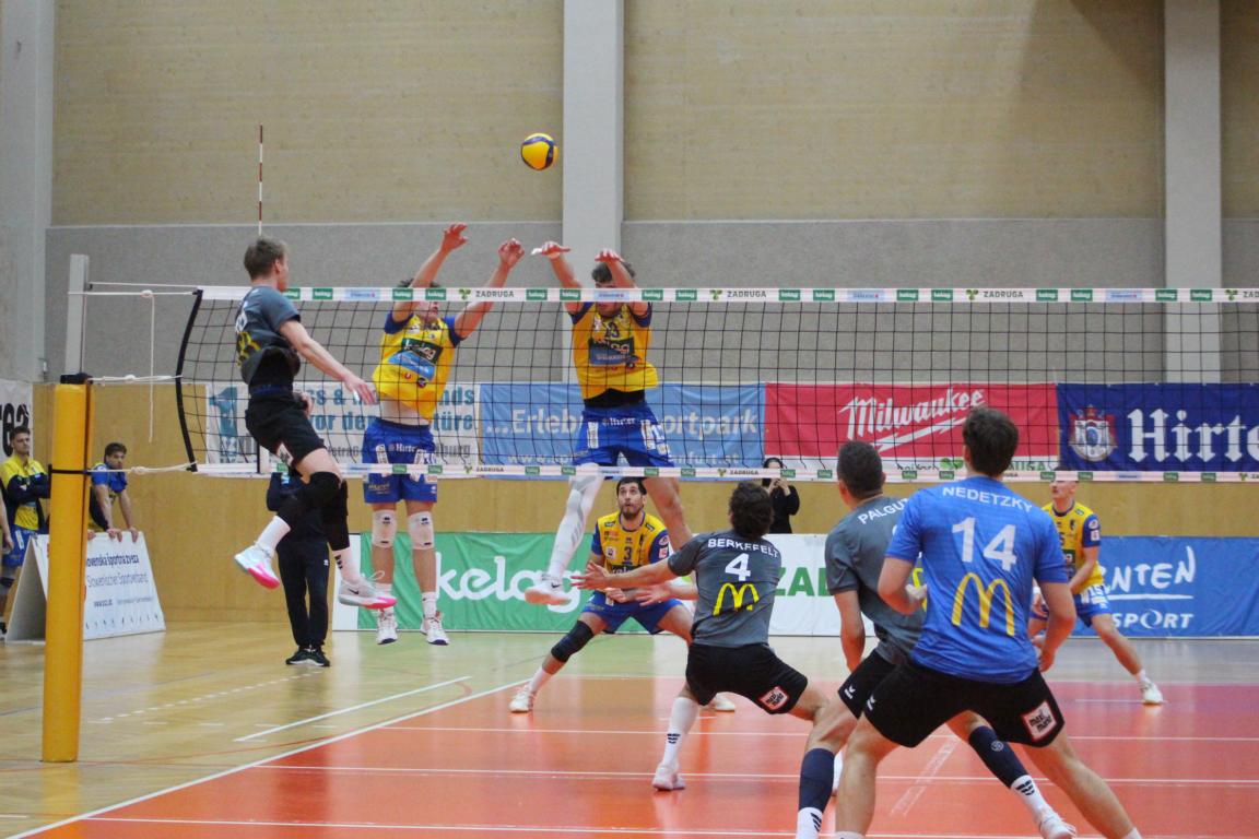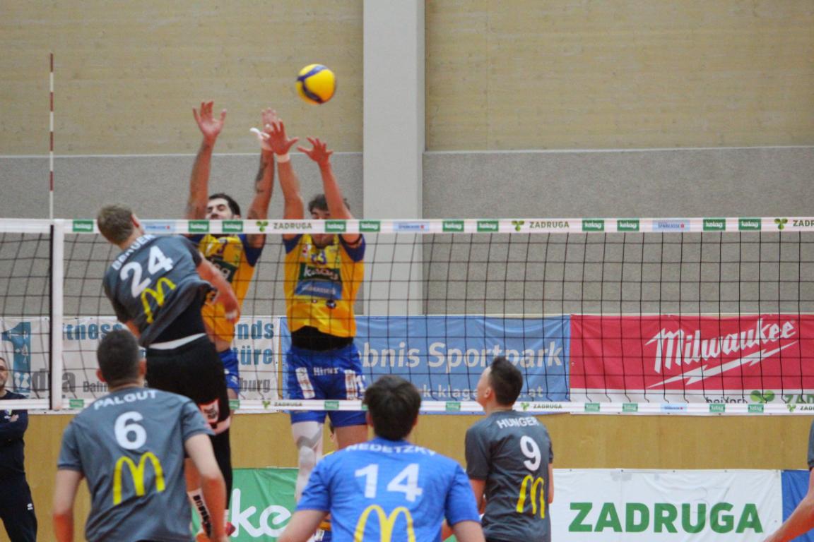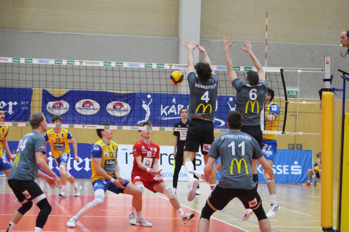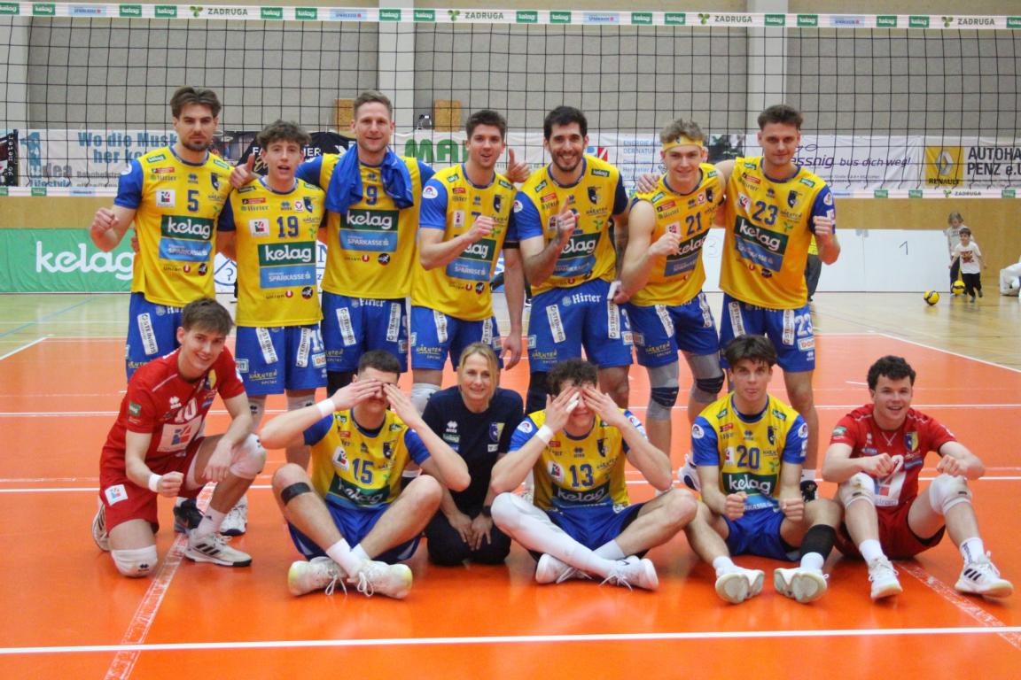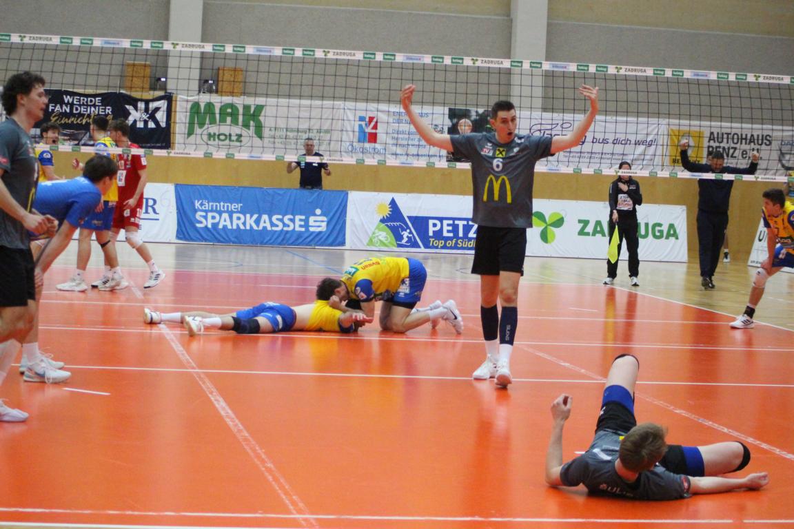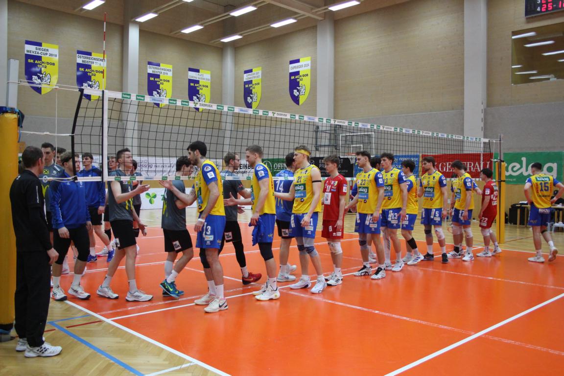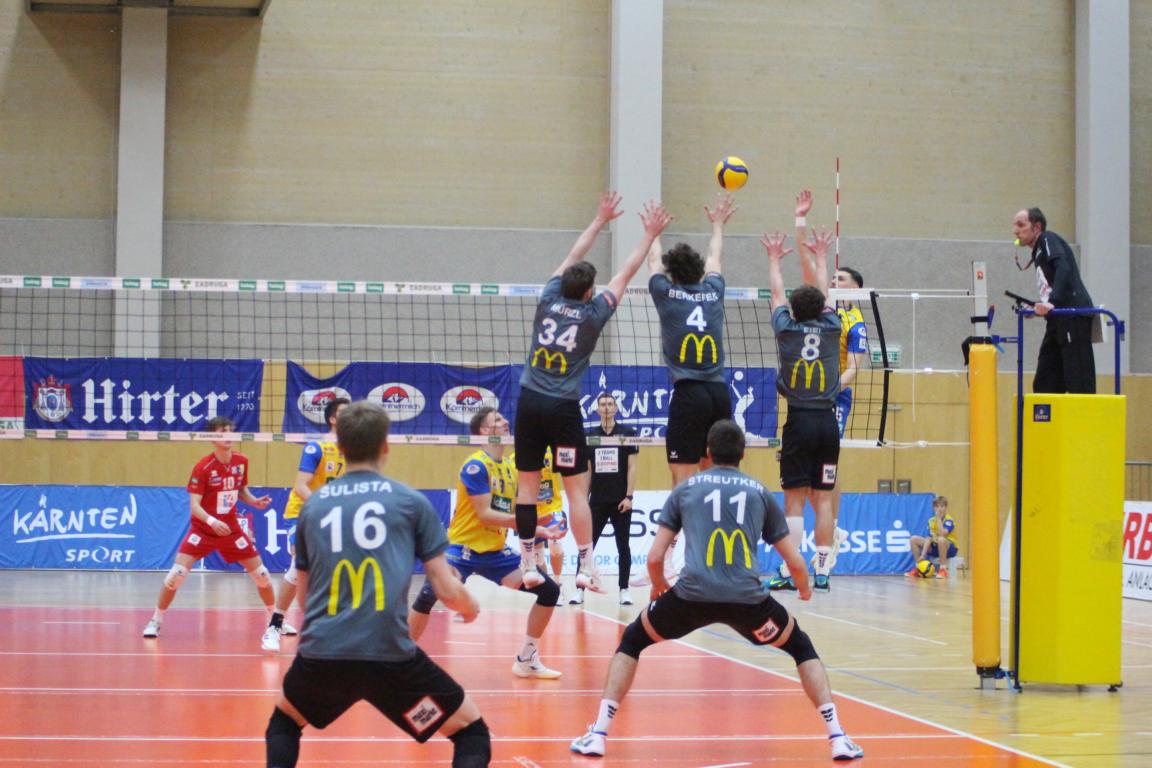 Erfolgreicher Auftakt für SK Zadruga Aich/Dob in der Halbfinalserie der AVL Men: Die Kärntner behielten am Sonntag vor heimischem Publikum mit 3:1 (22:25, 25:21, 25:19, 25:12) gegen UVC McDonalds Ried/Innkreis die Oberhand und gingen in der Best-of-5-Serie mit 1:0 in Führung.