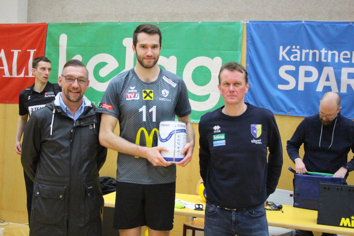 Als wertvollster Spieler (MVP) wurde Luan Weber ausgezeichnet. Der Diagonalspieler war mit 22 Punkten auch Topscorer der Partie und maßgeblich am Erfolg beteiligt. Aich/Dob-Sportdirektor Martin Micheu: „Der erste Satz war unglaublich – leider nicht in unserem Sinne. Wir sind erst Mitte-Ende des zweiten Satzes richtig ins Spiel gekommen. Lukas (Micheus Sohn war verletzungsbedingt als Zuspieler fraglich war, Anm.) hat stark durchgehalten, und Luan Weber eine sehr gute Leistung gezeigt. Aber Ried hat heute gut gespielt. So eine Leistung wird am Mittwoch in Ried nicht reichen.“