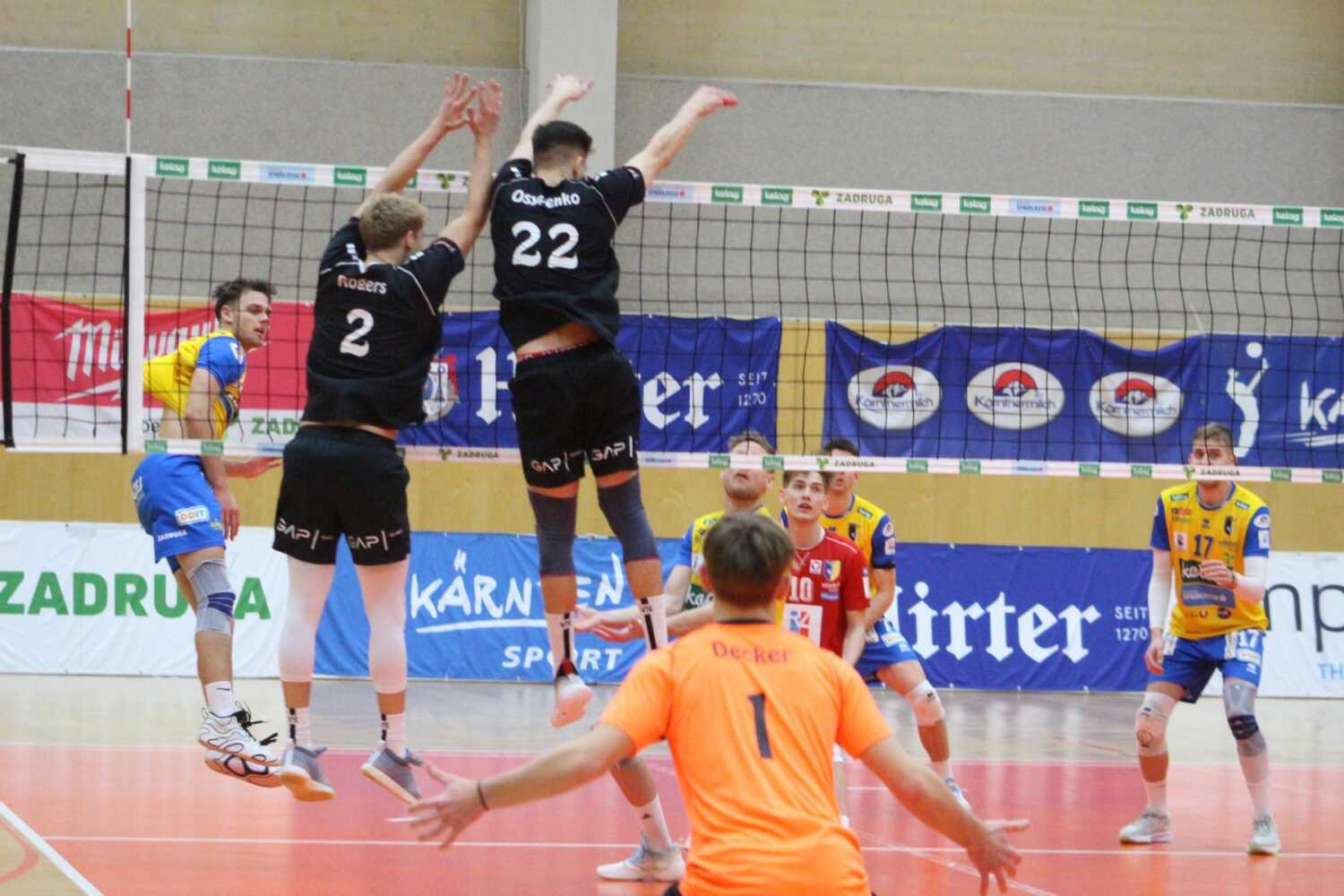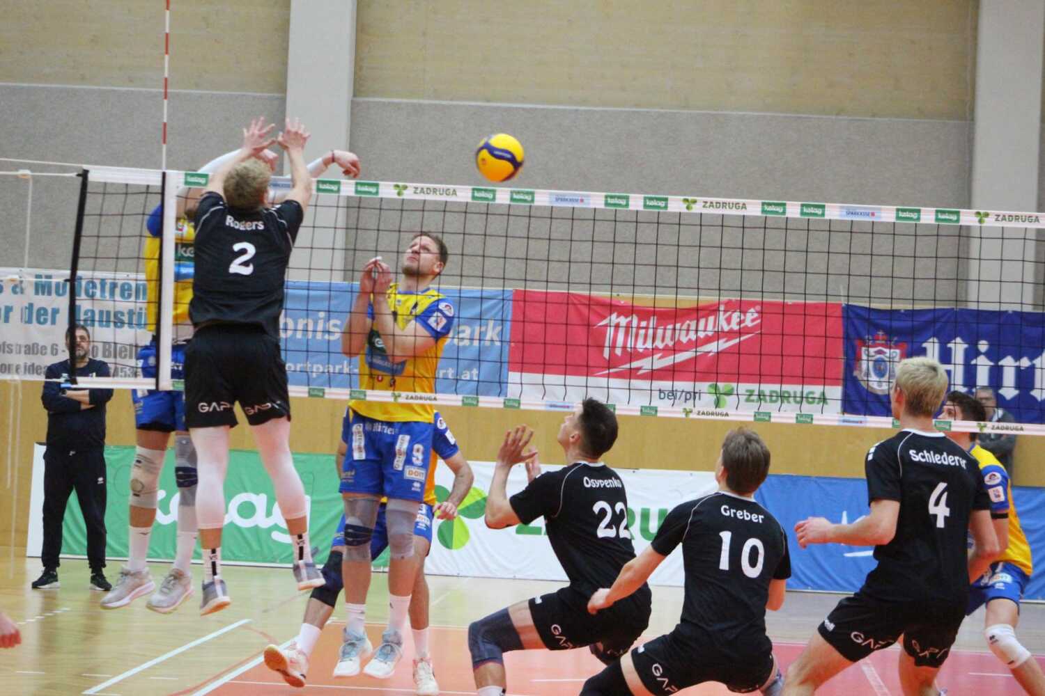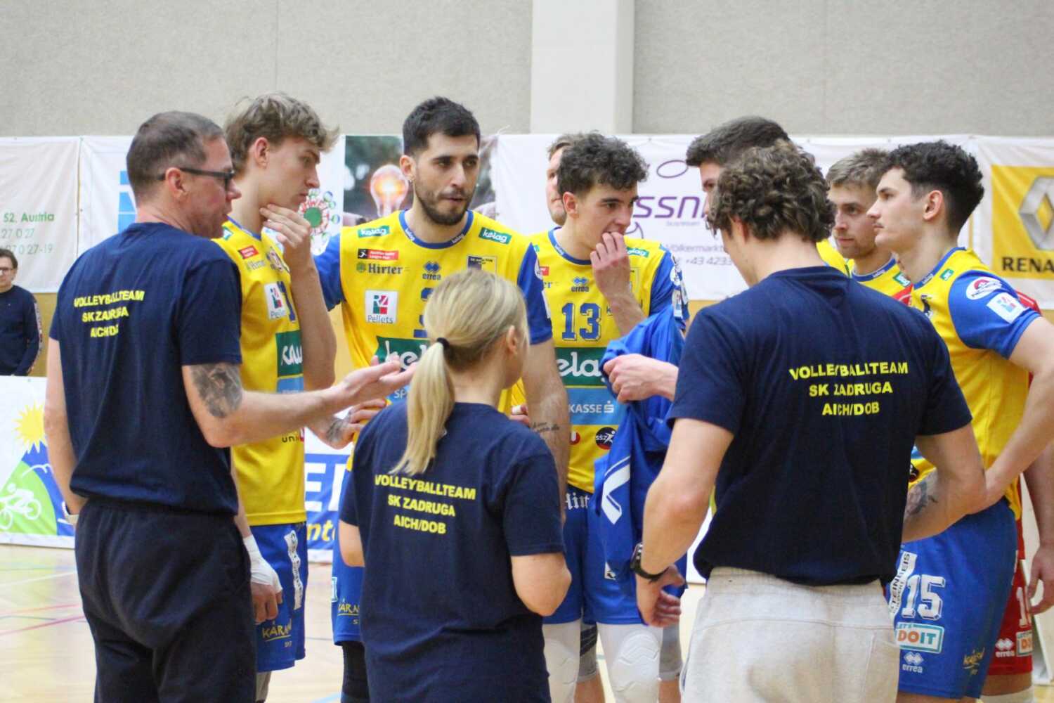 Tabellenführer SK Zadruga Aich/Dob bleibt weiter auf der Siegerstraße, schlug den VCA Amstetten NÖ daheim 3:1 ( 25:19, 21:25, 25:19, 25:16). MVP wurde Aich/Dob-Zuspieler Jiří Srb. Die Topscorerrolle ging an Robert Alexander Gavan vom VCA Amstetten NÖ, der 18 Punkte erzielte. Aich/Dob war vor allem am Block überlegen, wie 16:5-Blockpunkte verdeutlichten. Aich/Dob-Sportdirektor Martin Micheu: „Wir waren nahe dran, den Sieg zu verspielen. Nach dem klaren ersten Satz hat unser Team aufgehört, zu spielen und es wieder einmal im Schongang versucht, während Amstetten auch immer besser geworden ist. Am Ende haben wir aber gewonnen und bleiben vorne.“
