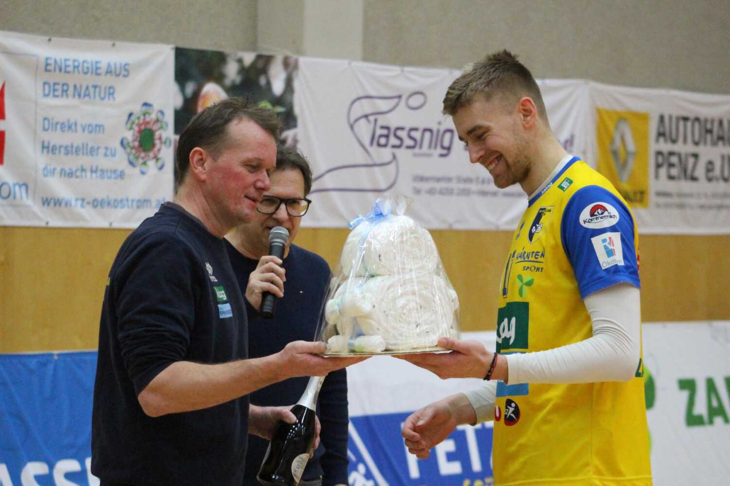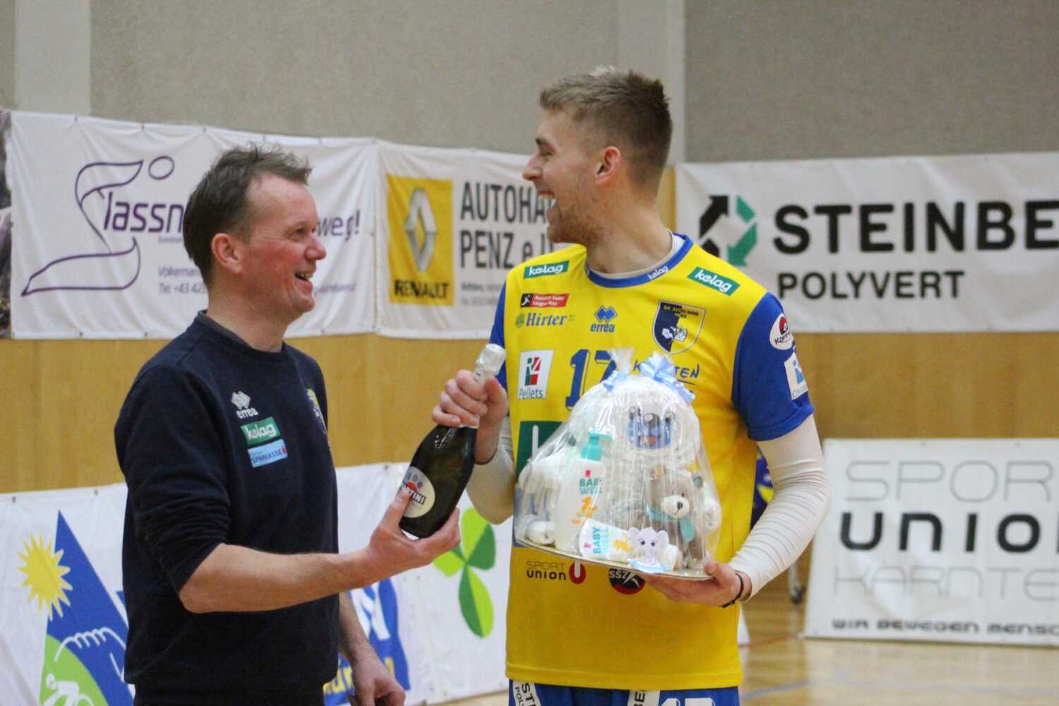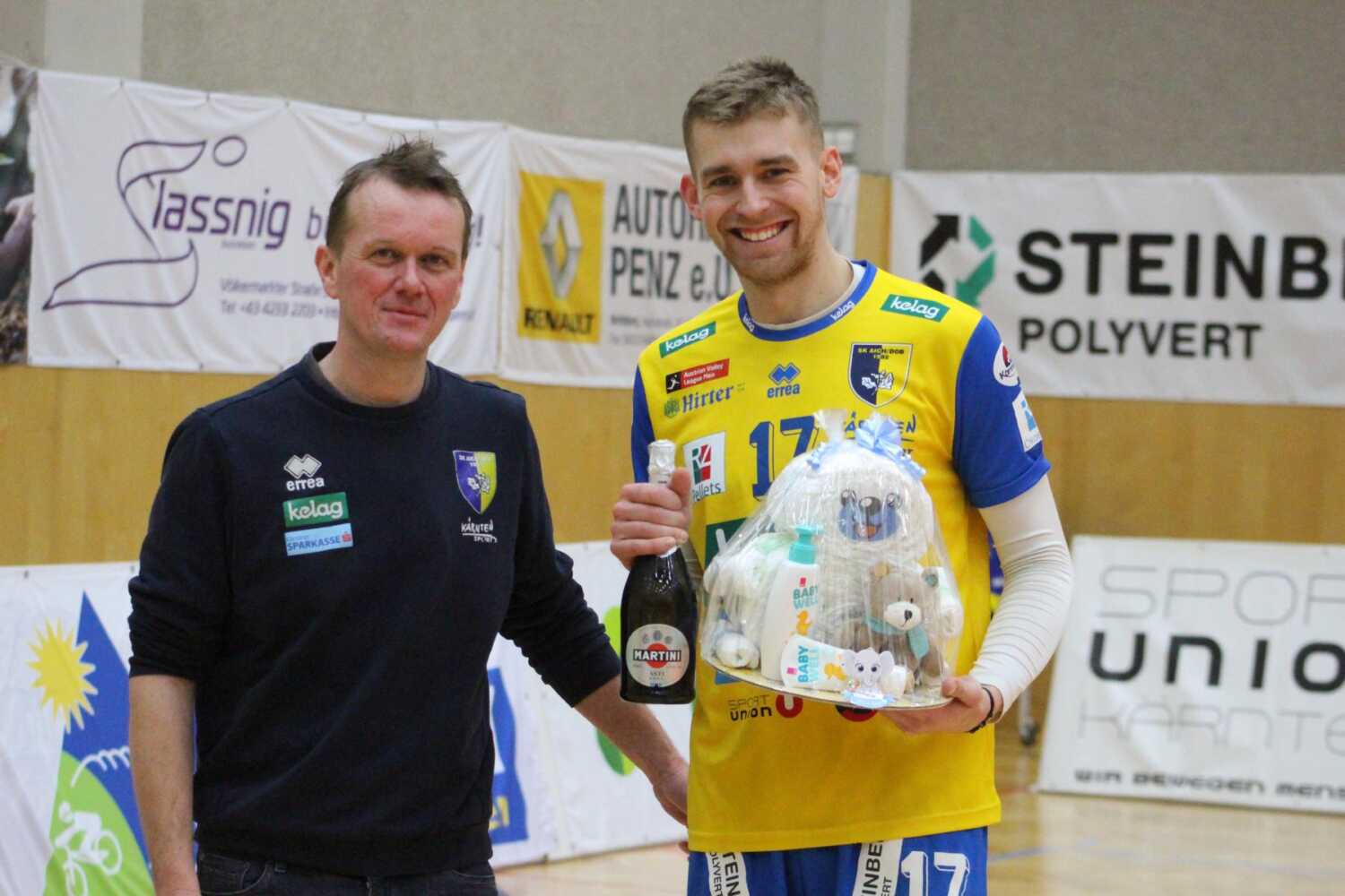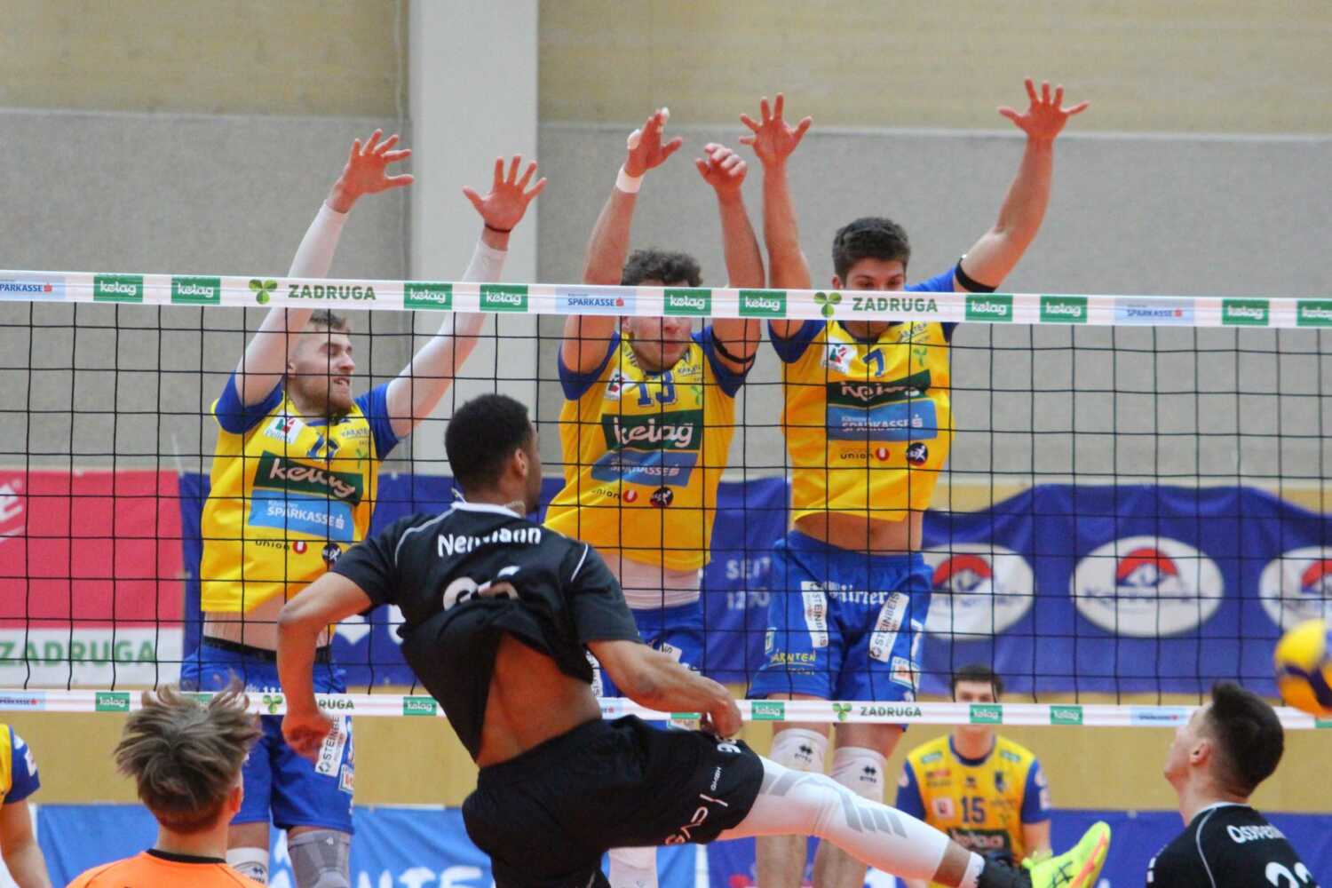 Tabellenführer SK Zadruga Aich/Dob bleibt weiter auf der Siegerstraße, schlug den VCA Amstetten NÖ daheim 3:1 ( 25:19, 21:25, 25:19, 25:16). MVP wurde Aich/Dob-Zuspieler Jiří Srb. Die Topscorerrolle ging an Robert Alexander Gavan vom VCA Amstetten NÖ, der 18 Punkte erzielte. Aich/Dob war vor allem am Block überlegen, wie 16:5-Blockpunkte verdeutlichten. Aich/Dob-Sportdirektor Martin Micheu: „Wir waren nahe dran, den Sieg zu verspielen. Nach dem klaren ersten Satz hat unser Team aufgehört, zu spielen und es wieder einmal im Schongang versucht, während Amstetten auch immer besser geworden ist. Am Ende haben wir aber gewonnen und bleiben vorne.“