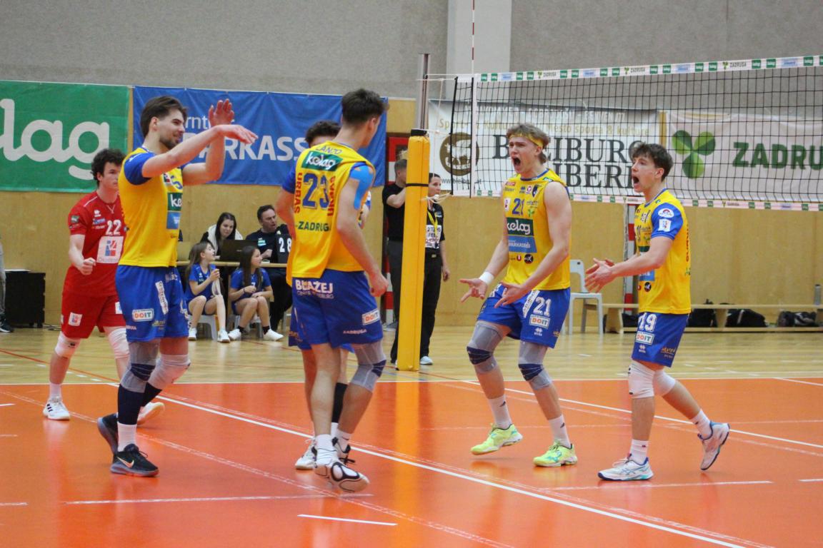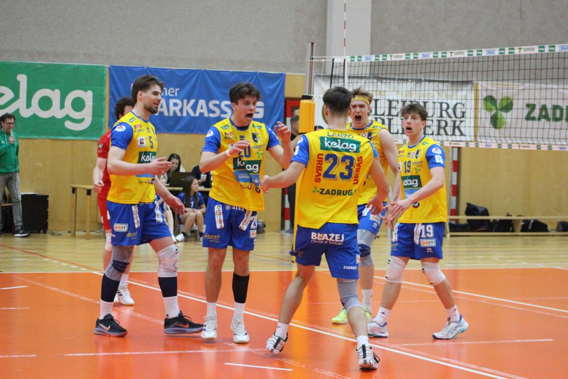 Auch in der dritten Playoff-Partie fertigte Grunddurchgangssieger SK Zadruga Aich/Dob Underdog VBK Kelag Wörther-See-Löwen Klagenfurt mit 3:0 (25:19, 25:17, 29:27) ab und blieb in allen fünf Kärntner Saisonderbys ohne Satzverlust.
