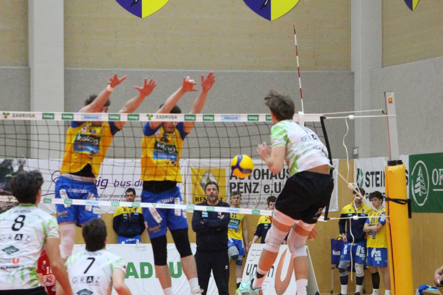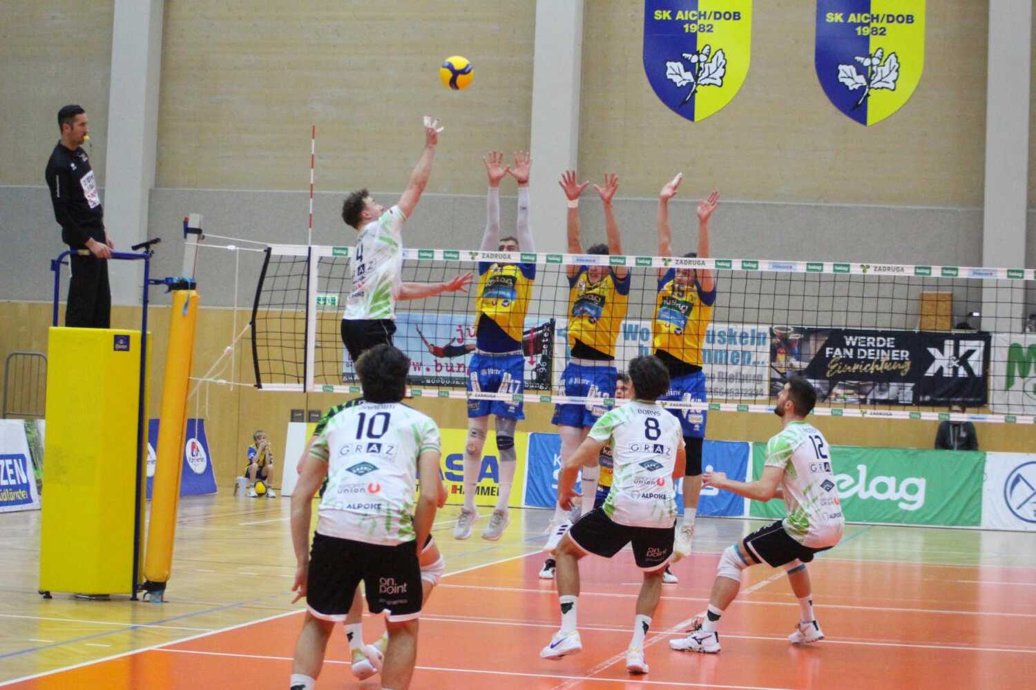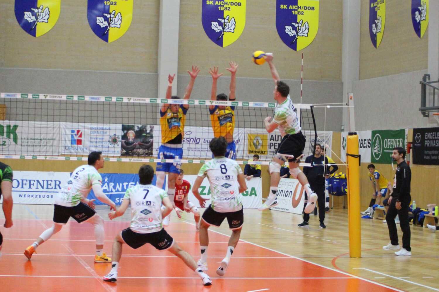 SK Zadruga Aich/Dob feierte bei seinem Liga-Auftakt ins Jahr 2026 einen klaren 3:0 (25:21, 25:21, 25:18)-Heimsieg gegen UVC Holding Graz und übernahm damit zumindest vorübergehend die Tabellenführung in der Austrian Volley League Men. MVP wurde Nicolai Grabmüller, Mittelblocker der Gastgeber, während Kristers Landzāns mit 14 Punkten Topscorer war. Mit 32 Punkten liegt Aich/Dob nun vorerst an der Spitze – der bisher führende TSV Raiffeisen Hartberg spielt erst am Sonntag in Amstetten. Martin Micheu, Sportdirektor von Aich/Dob, kommentierte: „Wir haben noch unter dem Schock des Europacup-Ausscheidens gestanden und auch so gespielt. Es war keine überragende Leistung, die Annahme war schwach. Wenigstens sind wir mal für zumindest einen Tag Tabellenführer.“
