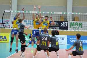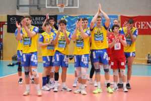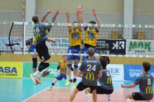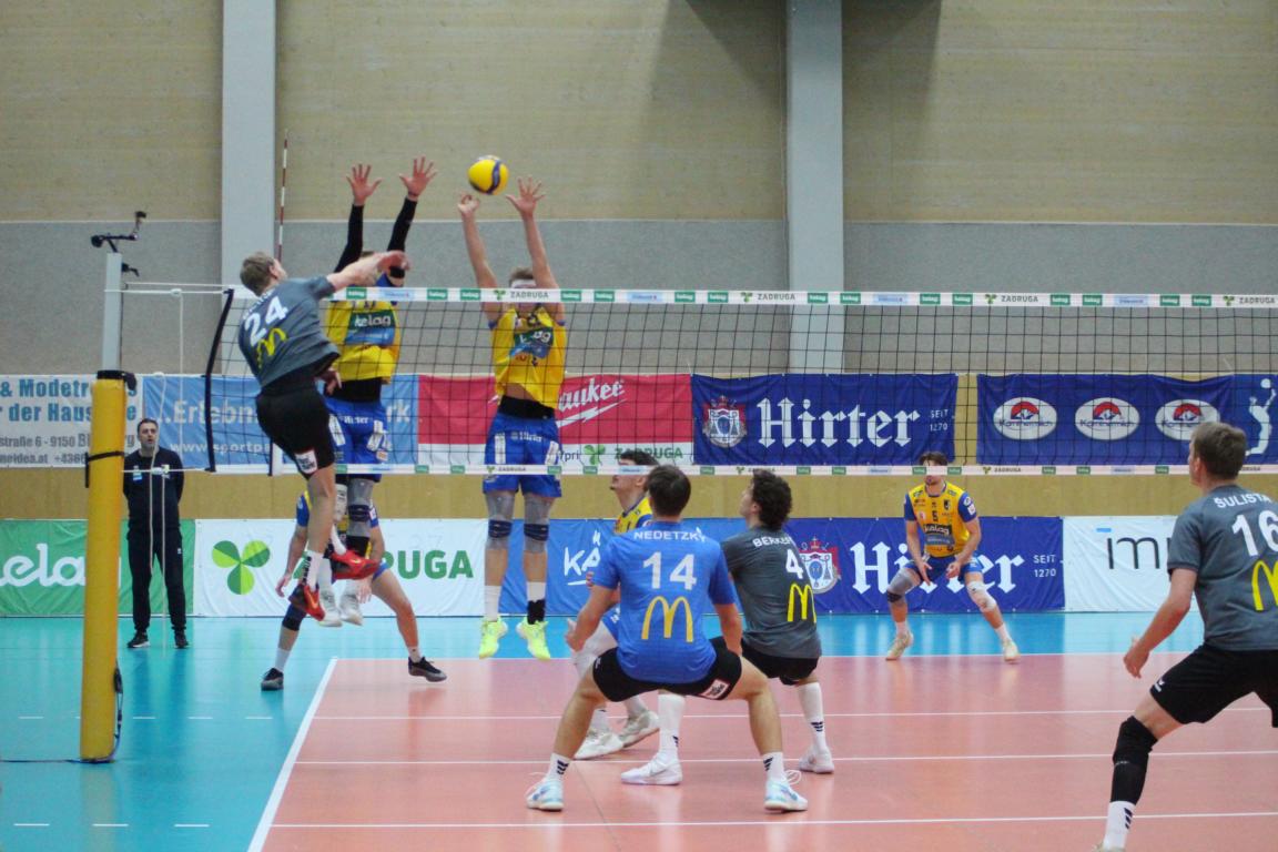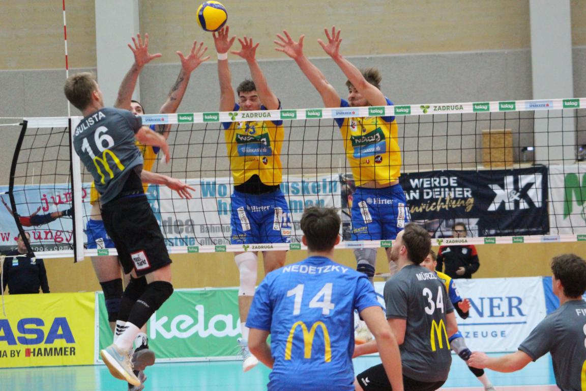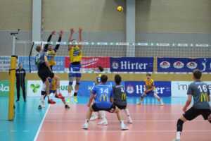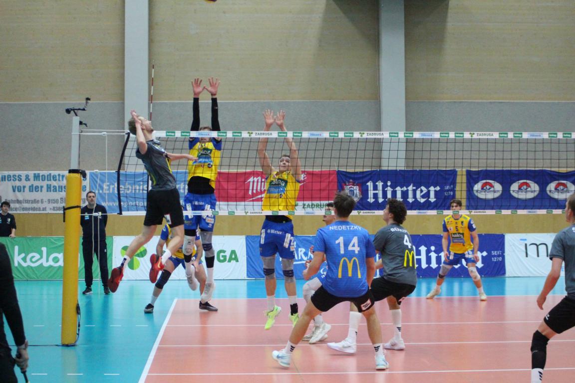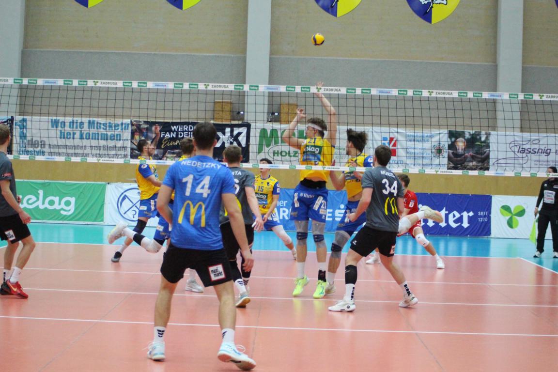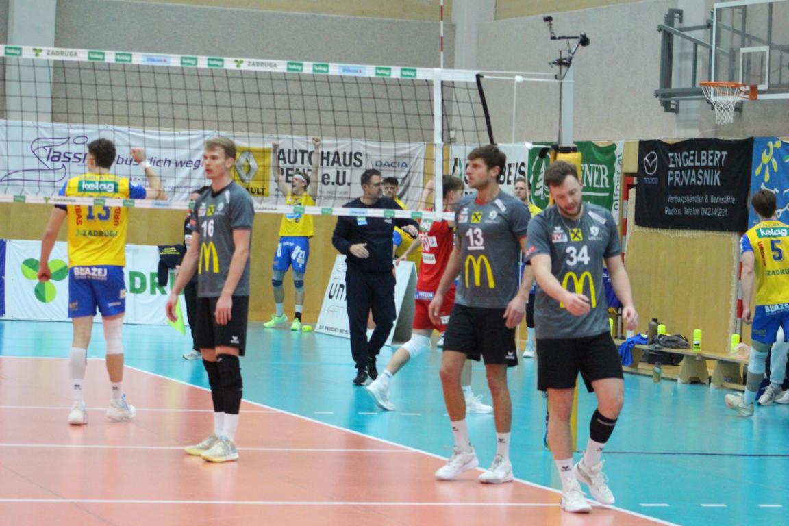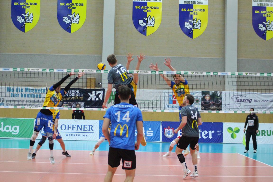 SK Zadruga Aich/Dob gelang im ORF-Livespiel in eigener Halle gegen UVC McDonald’s Ried/Innkreis die Revanche für die 2:3-Niederlage am Mittwoch. Diesmal setzte sich Aich/Dob klar mit 3:0 durch, behielt mit 25:17, 25:21 und 25:16 die Oberhand.